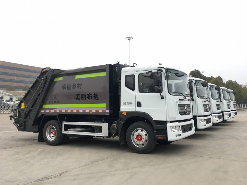 該車主要用于垃圾收集清運,主要專用裝置為垃圾箱、翻轉(zhuǎn)上料裝置、舉升卸料裝置、填壓機構(gòu)、液壓系統(tǒng)。卸料方式為后卸式。側(cè),后防護材料均為Q235,焊接,后防護截面尺寸(mm):50×120,離地高度400mm。ABS控制器型號/生產(chǎn)企業(yè):CM4YL/廣州瑞立科密汽車電子股份有限公司